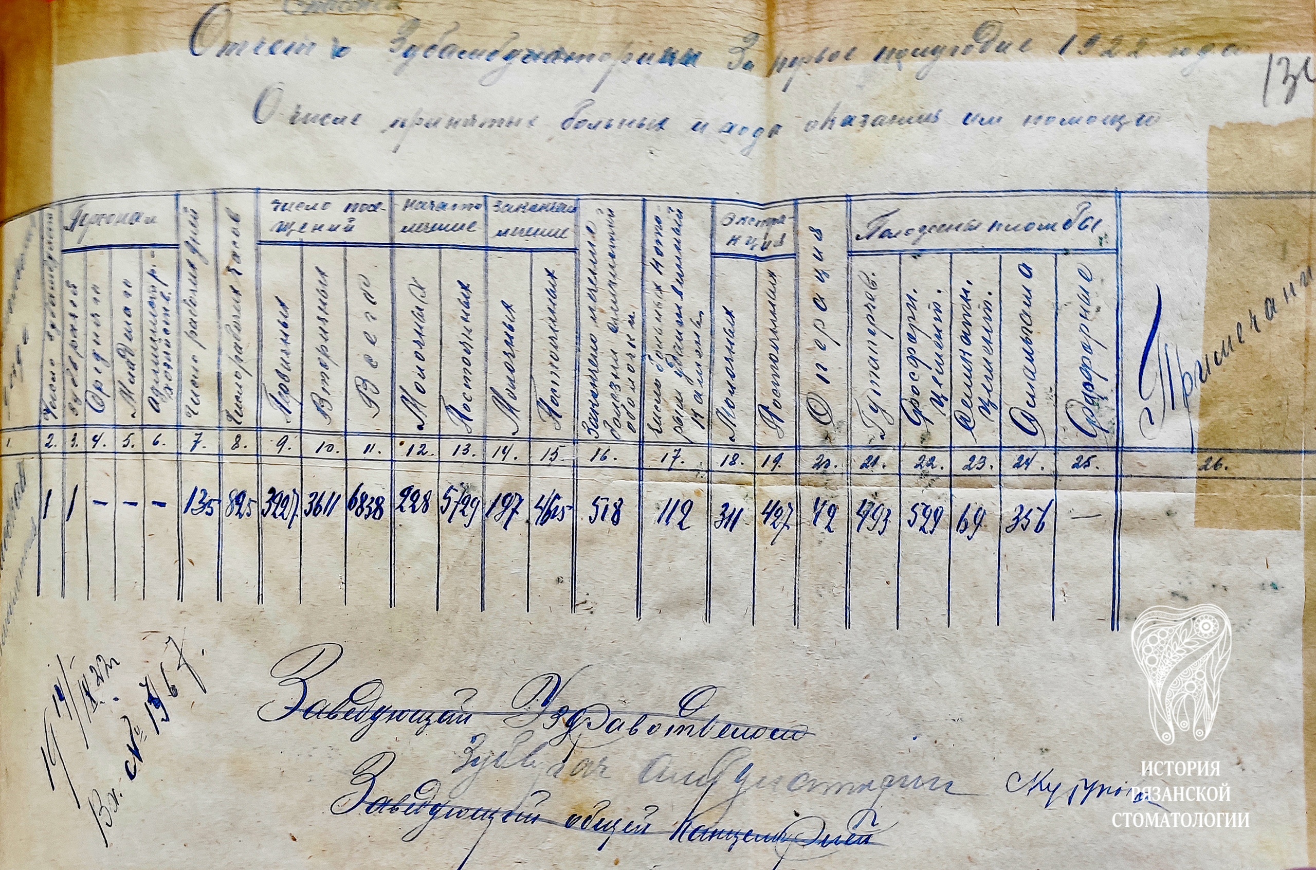 1922 год, отчёт о приёме пациентов в Спасской зубоврачебной амбулаторией, подписан Софией Кутуковой.
