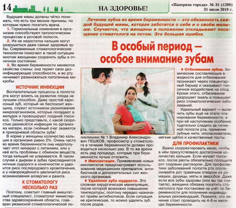 Главный врач рязанской стоматологической поликлиники N°1 Владимир Пешков рассказал читателям «Панорамы города» об особенностях лечения зубов во время беременности.